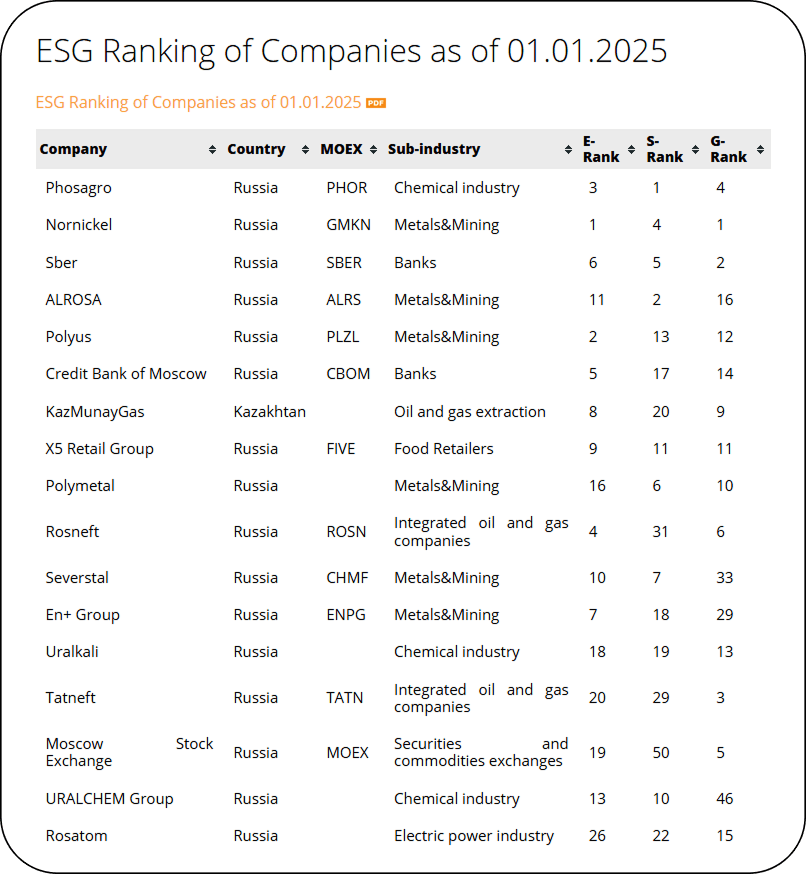 В основе лежит понимание того, как компания заботится и воздействует на окружающую среду, как управляет рисками.