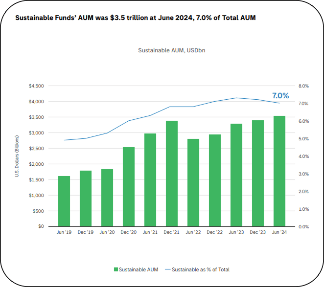 Согласно отчету Morgan Stanley за 2024 год, активы под управлением устойчивых фондов достигли 3.5 трлн долларов. Доходность выросла на +1,8% против +1,6% для традиционных аналогов. Рост продолжается , несмотря на нестабильную геополитическую ситуацию.