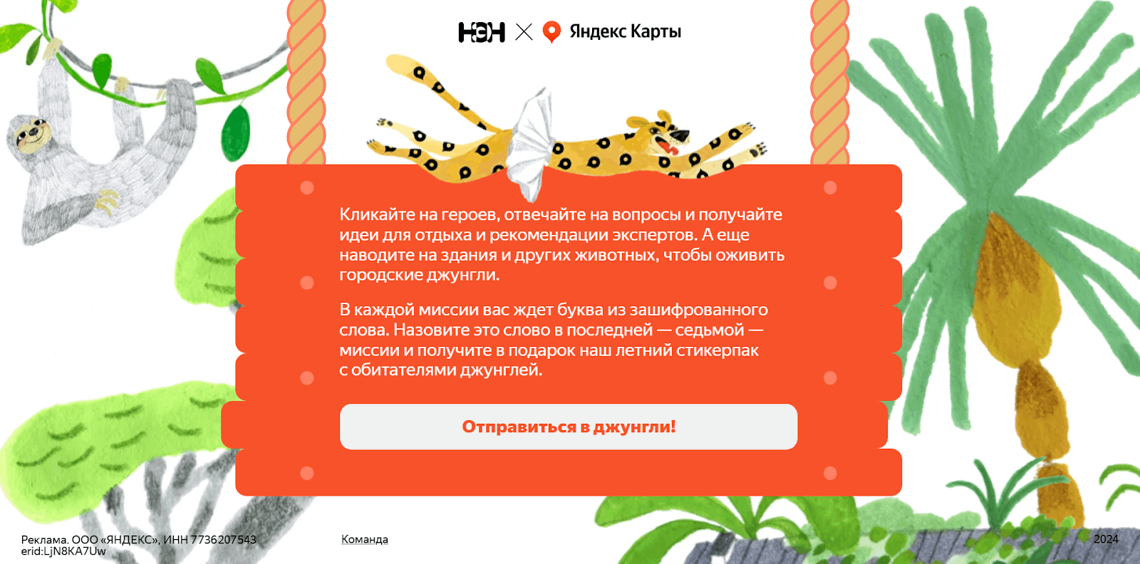 Пример — «Городские джунгли» от Яндекс Карт, квест для родителей и детей, превращающий поиск места для отдыха в целое приключение.