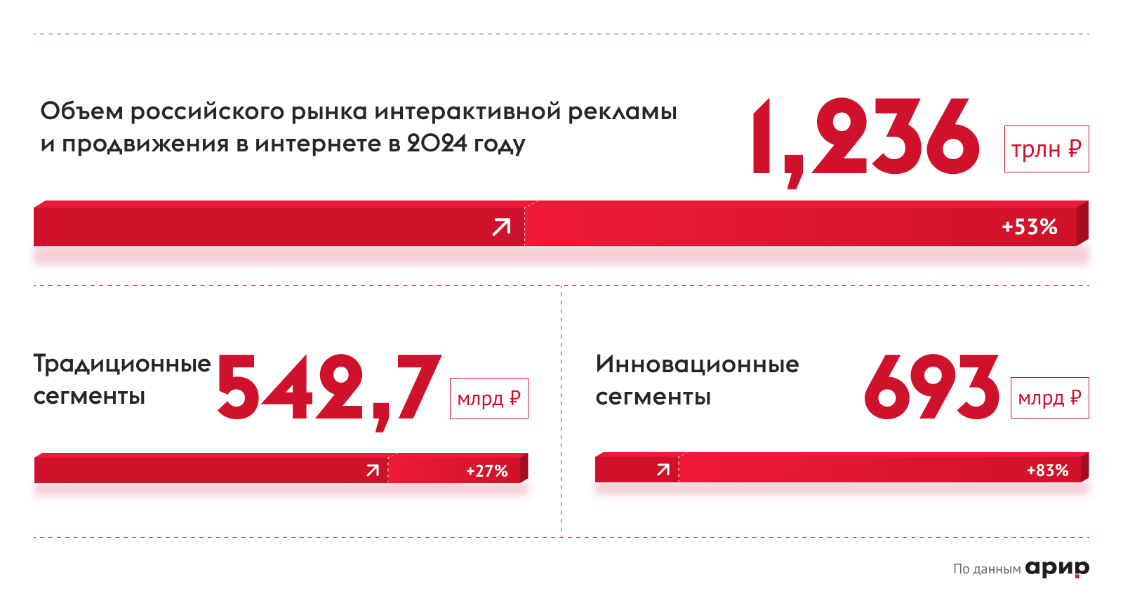 Статистика справедлива и для российского рынка. По данным АРИР за 2024 год, 60% рекламных бюджетов компаний уходит в digital.