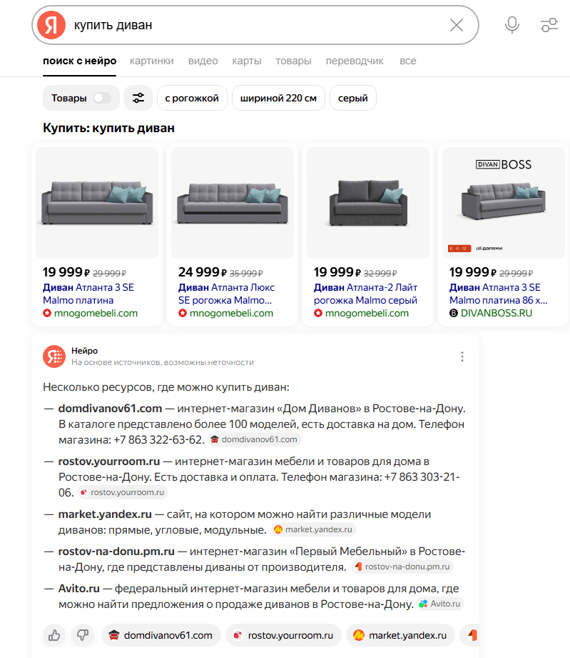 Поисковые системы становятся умнее, а SEO — сложнее. Акцент с привычного продвижения смещается на точечные усилия — адаптацию контента под алгоритмы нейросетей, например, Google Gemini. Пользователи постепенно отказываются от привычного поиска, предпочитая использовать GPT и другие сервисы. Яндекс Нейро уже отсекает плоды привычной оптимизации, сразу выдавая пользователю сжатый ответ по запросу. Аналогично поступает и Google, интегрируя нейросети для поиска и обработки информации. Снижается потребность открывать сайты в выдаче — ответ находится прямо под запросом.