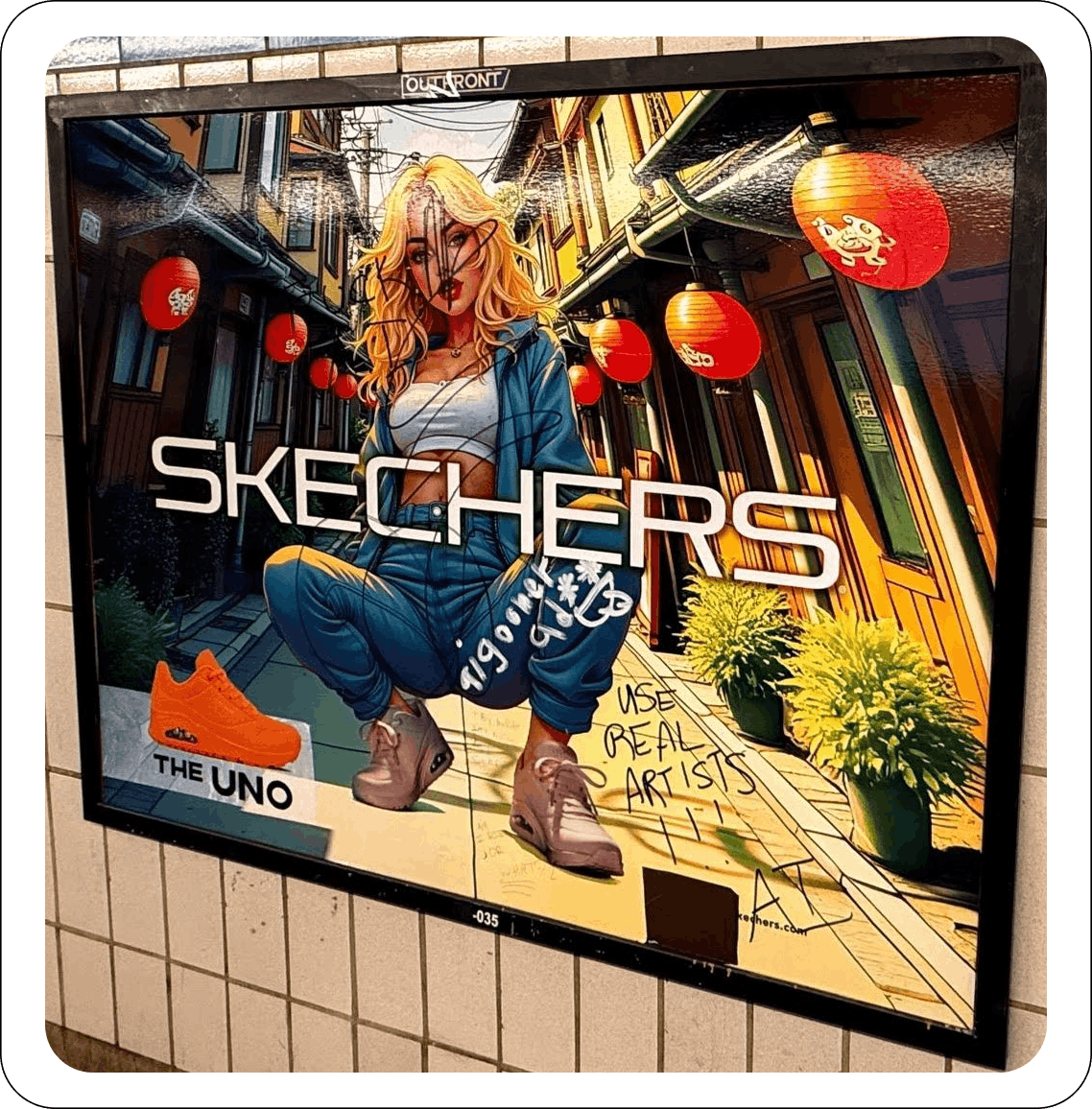 В метро Лос-Анджелеса появились плакаты с кривыми генерациями и прифотошопленными кроссовками. Аудитория осудила бренд не столько за факт использования ИИ, сколько за бездарный подход: картинки содержали множество артефактов. «Если экономите на художниках, не стоит экономить на подписке» — писали в комментариях.
