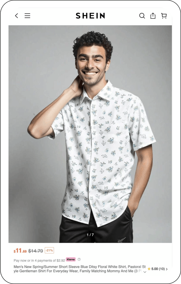 На маркетплейсе появились фото мужчины в футболках и рубашках по 10$. Все бы ничего, но он как две капли воды был похож на Луиджи Манджоне, которого в 2024 признали виновным в убийстве директора страховой компании UnitedHealthcare. Выяснилось, что лицо Луиджи просто добавили к телу модели через нейросеть. Shein быстро снесли фото, но про «строгие стандарты» аудитория выводы сделала. Остается только догадываться, сколько таких «моделей» прямо сейчас продают одежду на китайских маркеплейсах.