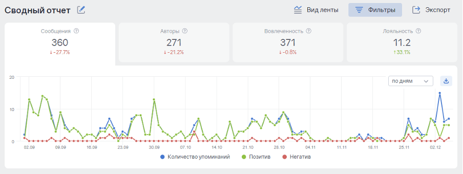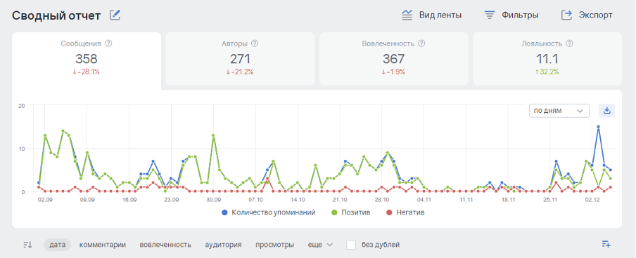Негатив будет всегда, но любой всплеск это сигнал для компании. Возможно, мелкий конфликт с клиентом вырос до полноценного скандала. Возможно, есть проблема с конкретной услугой или товаром. Если в сентябре-октябре компания получала в среднем 15 негативных упоминаний, а в ноябре получила 50, что-то идет не так.