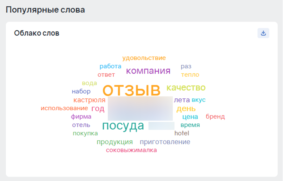 На основе собранных упоминаний Brand Analytics формирует облако слов. Это те вещи, о которых клиенты пишут чаще всего и на чем делают акцент. В зависимости от сферы компании и тональности упоминаний облако слов будет меняться. В норме в облаке присутствуют название бренда и нейтральные слова, соответствующие органике. Если в облаке появились негативные маркеры, слова «мошенники», «обман», «развод» и другие, это повод заняться репутацией.