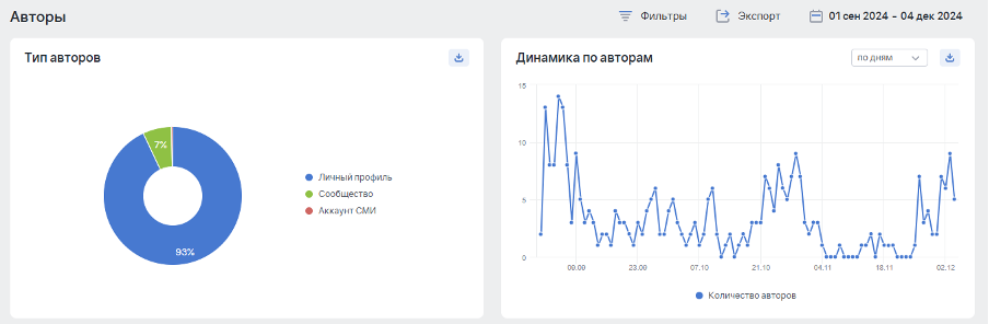 Система анализирует авторов, сегментирует, от чьего лица появилось упоминание: СМИ, сообщество, личный профиль.