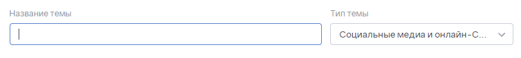 Назовите тему, выберите тип. По умолчанию программа будет собирать упоминания в социальных медиа и СМИ, вы можете выбрать только СМИ, либо задать свой список ссылок для избранных авторов. Мы рекомендуем выбирать первое — социальные медиа и СМИ.