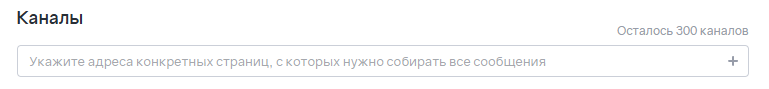 В «каналах» выберите приоритетные источники для сбора: группу бренда в соцсети, карточку на отзовике, ветку форумного обсуждения и т.д. Указывайте прямую ссылку на страницу компании — полный url, а не ссылку на главную страницу.