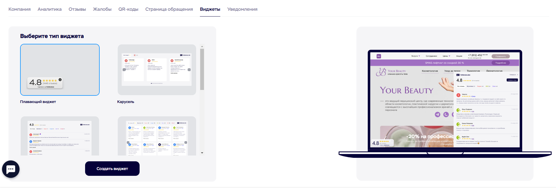 Виджеты отзывов на сайт