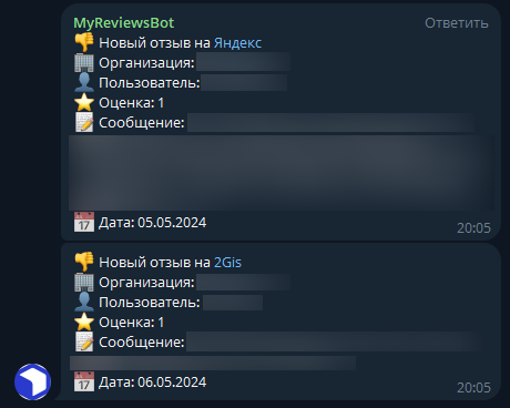 Готово, теперь MyReviews будет собирать отзывы с выбранных площадок в Телеграм бот.