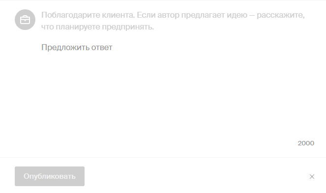 Выберите отзыв, на который нужно ответить. Откроется поле для ввода текста.