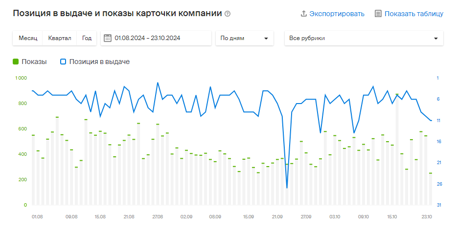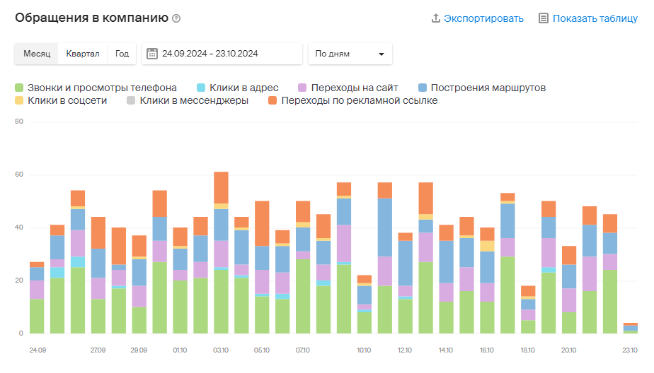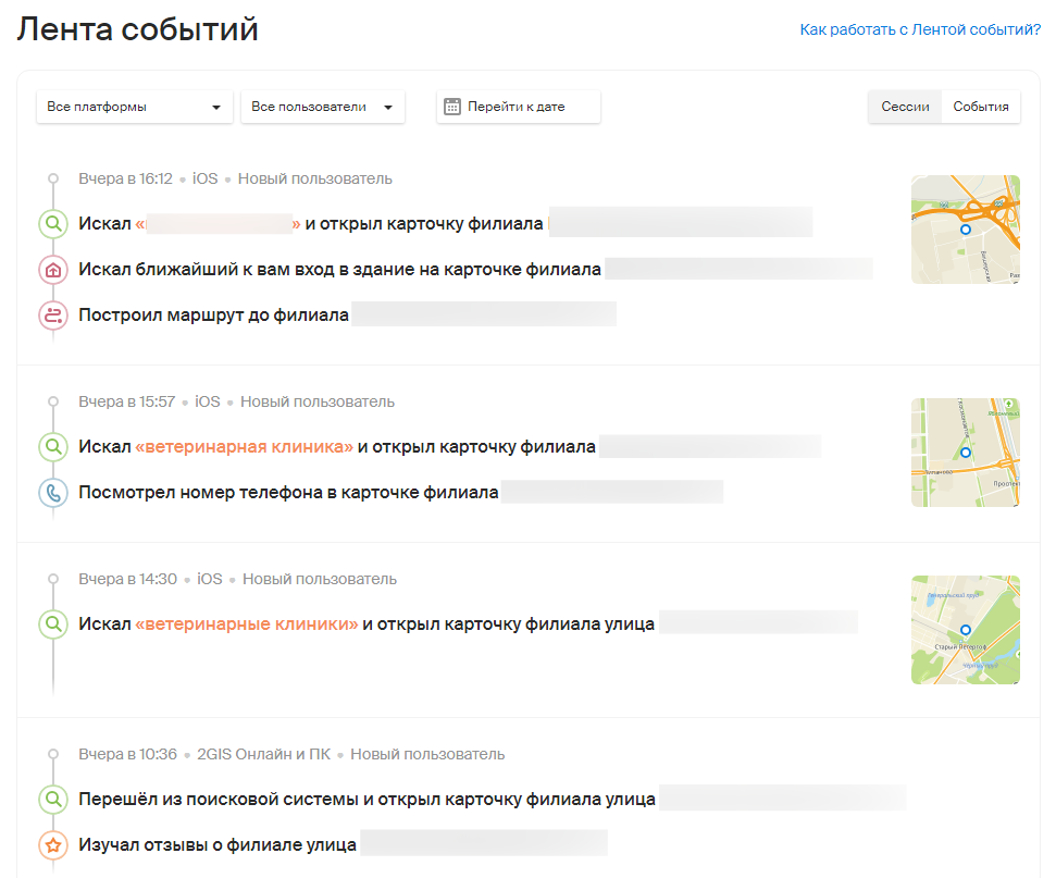 Вы можете посмотреть, по каким запросам пользователи находят организацию, с каких устройств, сколько времени проводят в карточке.