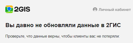 Информацию о компании нужно регулярно обновлять и подтверждать в справочнике, иначе 2gis может посчитать организацию закрытой.