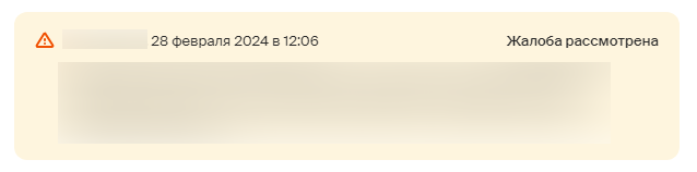После отправки треугольник под отзывом сменит цвет, появится информация о статусе вашей жалобы.