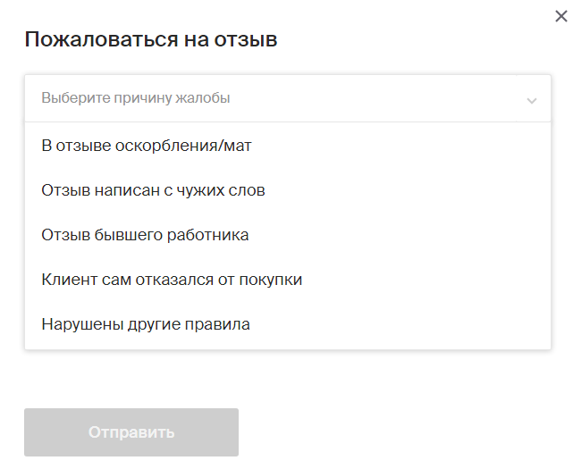 Откроется поле для подачи жалобы. Сверьтесь с правилами публикации отзывов и выберите пункт, который нарушил автор. В текстовом поле можете привести цитату нарушения, расписать жалобу подробнее.