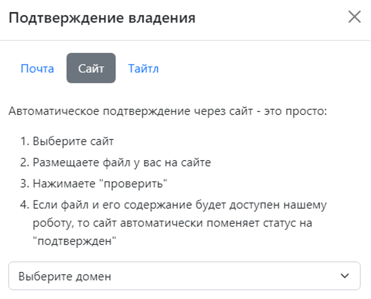 Подтверждение через тайтл по факту еще один вариант подтверждения через сайт, только на этот раз Справкер предлагает вставить title в заголовок браузера.