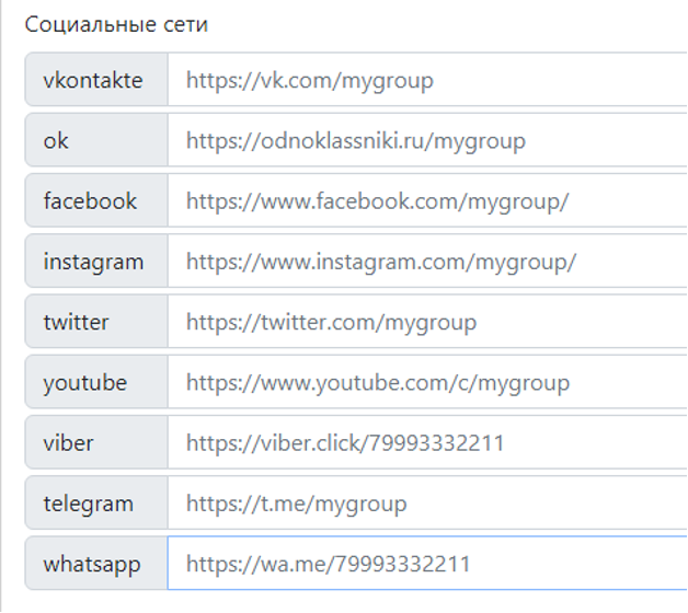 Укажите ссылки на социальные сети. Удивительно, но в данном пункте выбор у Справкера довольно богатый.