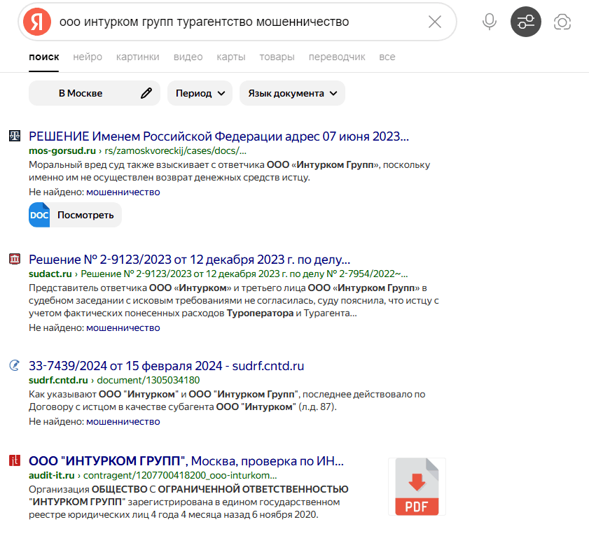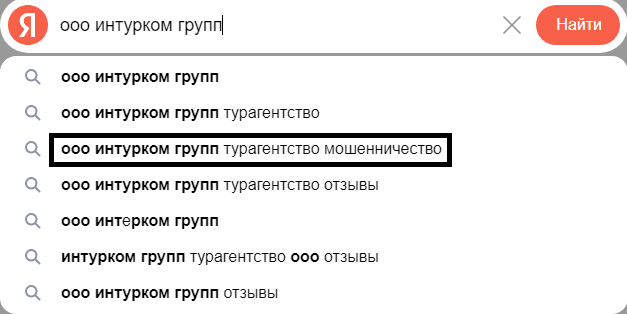 | Негативная подсказка | ооо интурком групп турагентство мошенничество | ||