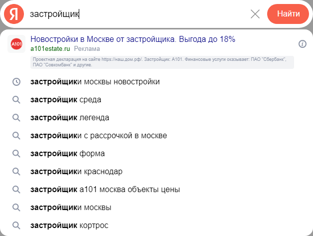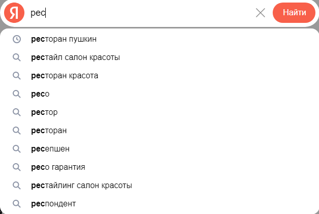 Поисковые подсказки — это автодополнение фразы, которое видит пользователь при вводе запроса в поисковую строку. Достаточно набрать пару букв и алгоритм предложит варианты продолжения запроса. Такие дополнения называются «саджест» — от английского «предположение».