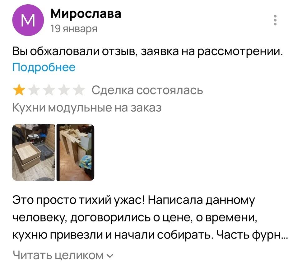 Пишите по существу и ссылайтесь на пункты правил Авито, которые нарушил автор. Так шанс удалить негатив будет выше. Модератор рассмотрит жалобу в течение двух дней, под ником автора отзыва появится отметка о поданной жалобе.