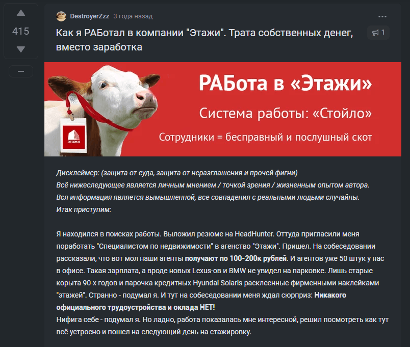 Довольные сотрудники работают дальше, недовольные рано или поздно увольняются и рассказывают про свой опыт. Внешне это выглядит как перекос, отзывы в основном негативные, но по факту это ошибка выжившего — в интернете оседают только мнения тех, кто уволился. Остальных устраивают компания и условия работы. Либо они делают вид, что устраивают.