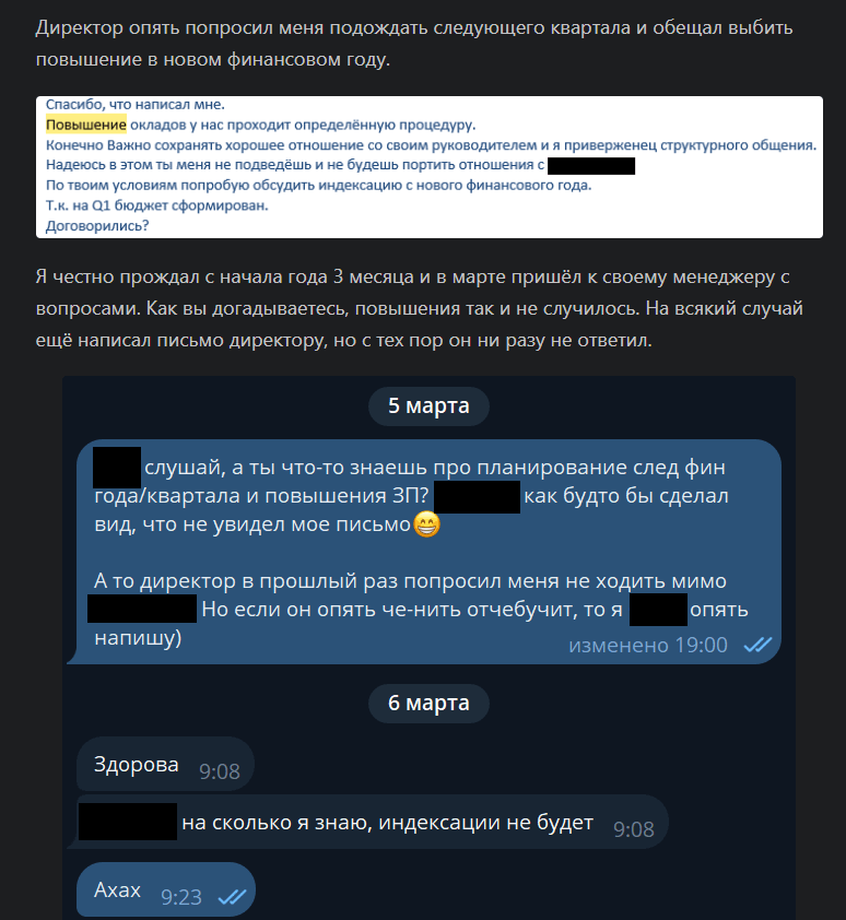 Реальность такова, что многие сотрудники живут в парадигме «улыбаемся и пашем». Разговоры про открытую корпоративную культуру и заботу о ментальном здоровье остаются в кабинетах HR-специалистов. В итоге недовольство накапливается, растет отторжение к компании. После увольнения сотрудника «прорывает» — больше нечего терять и некого бояться.