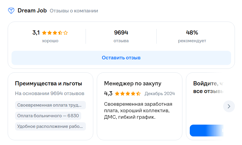 В поиске информации о работодателе больше: посты в соцсетях, другие отзовики, обзоры блогеров, судебные дела и много других вещей. Если контент содержит ключевую фразу «название компании + отзывы сотрудников», соискатель увидит его.