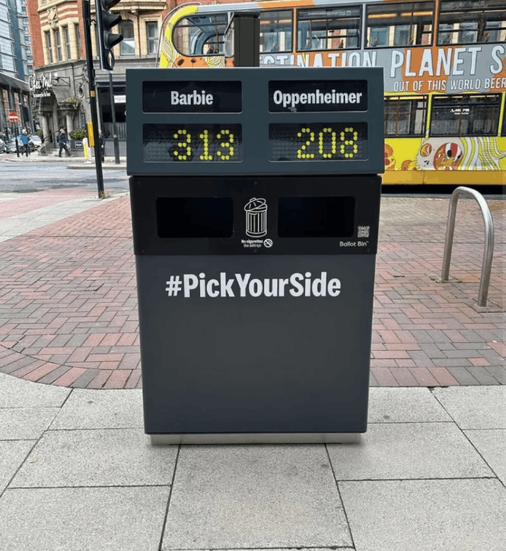 Маркетологи подхватили волну — на улицах появились мусорные контейнеры со счетчиком голосов за фильмы.