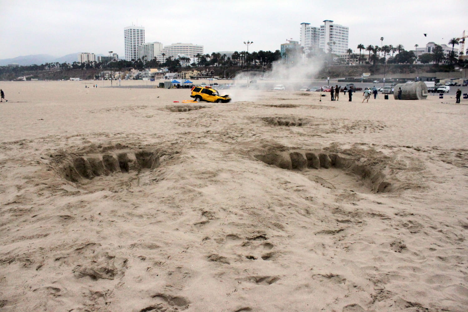 Снова Кинг-Конг — следы на пирсе Санта-Моника в Лос-Анджелесе, которые ведут в сторону Universal Studios Hollywood. Реклама аттракциона Кинг-Конг 360 3D.