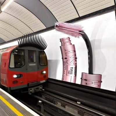 В июле Maybelline New York выпустил короткий ролик, в котором вагон метро с гигантской ресницей проезжает под щеточкой, словно нанося тушь. Похожий «макияж» позже наносит автобус.