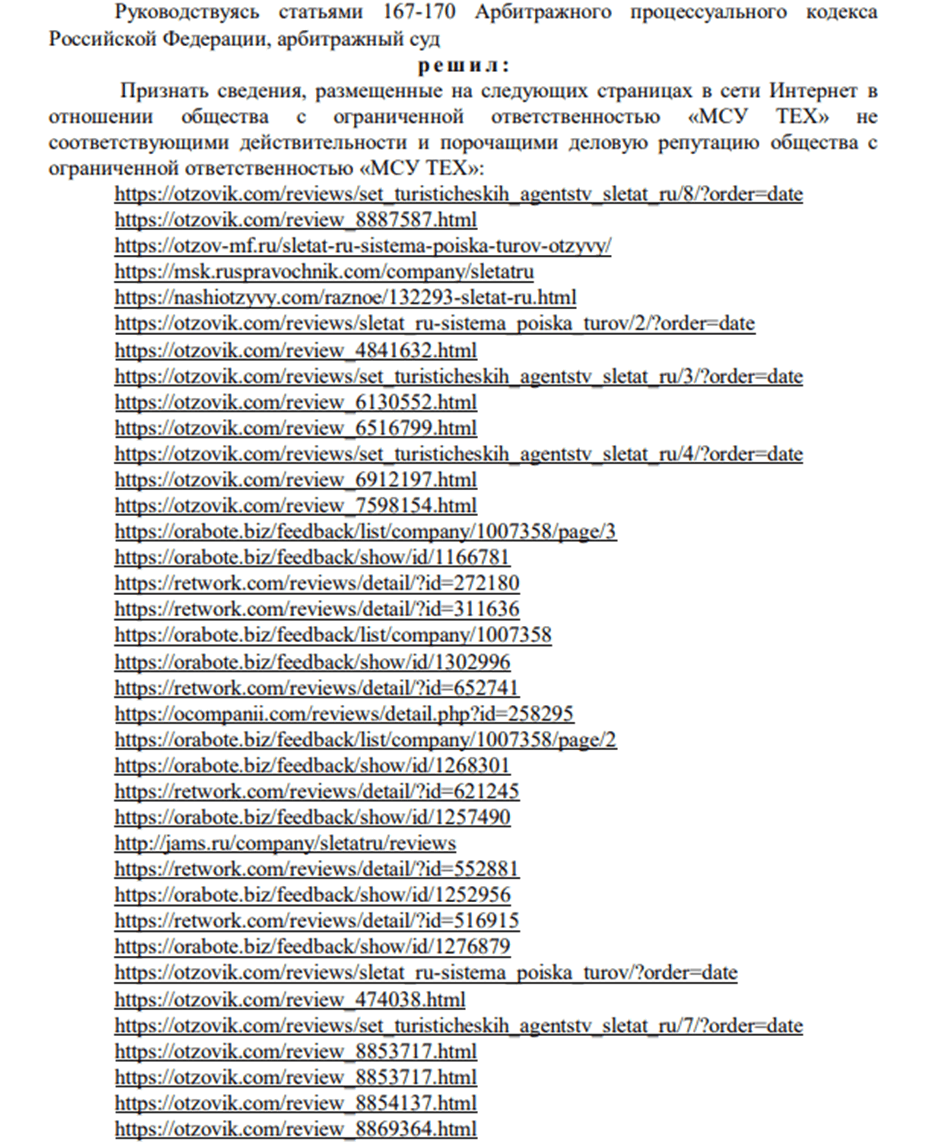 Вывод: если вы намерены обращаться в суд для удаления отзывов, постарайтесь собрать максимальное число отзывов и проверить все источники, где о компании могли публиковать негатив. Убедитесь, что негатив в отзывах написан в утвердительной форме и не является субъективным мнением.