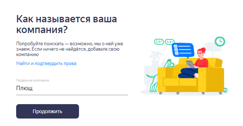 Для создания карточки компании понадобится Яндекс почта, к ней будет привязан личный кабинет.