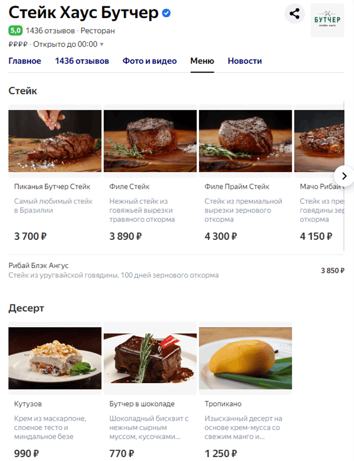 Особое внимание стоит уделить товарному блоку, историям и меню. Так бизнес получит больше клиентов и привлекательный визуал в поиске. Клиенту не потребуется совершать лишние действия, если товары и меню представлены в карточке.