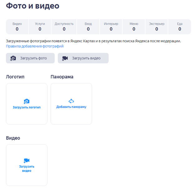 Учтите, что все фотографии и видео проходят модерацию, поэтому Яндекс не примет стоковые фото или те, которые нарушают правила. Не стоит загружать провокационные материалы или эротику. Например, если организация — ночной клуб с шоу 18+, загружать фото непосредственно с шоу не стоит, велик риск не пройти модерацию. Ограничьтесь интерьером.