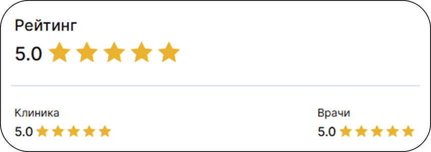 Поддержка высоких рейтингов и лояльности позволила закрепить позиции на рынке, стать уверенным лидером среди частных клиник узкого профиля. Работа с репутацией повысила доверие потенциальных пациентов и обеспечила стабильный поток лидов через медицинские сервисы.