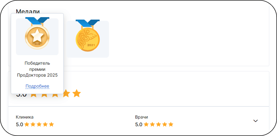 Рейтинг клиники и врачей на ПроДокторов.