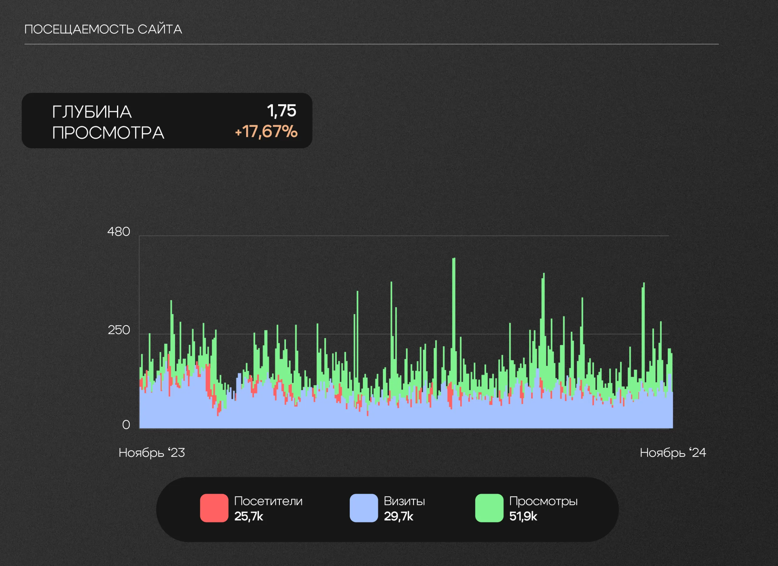 Закономерно выросла посещаемость сайта заказчика и глубина просмотра.
