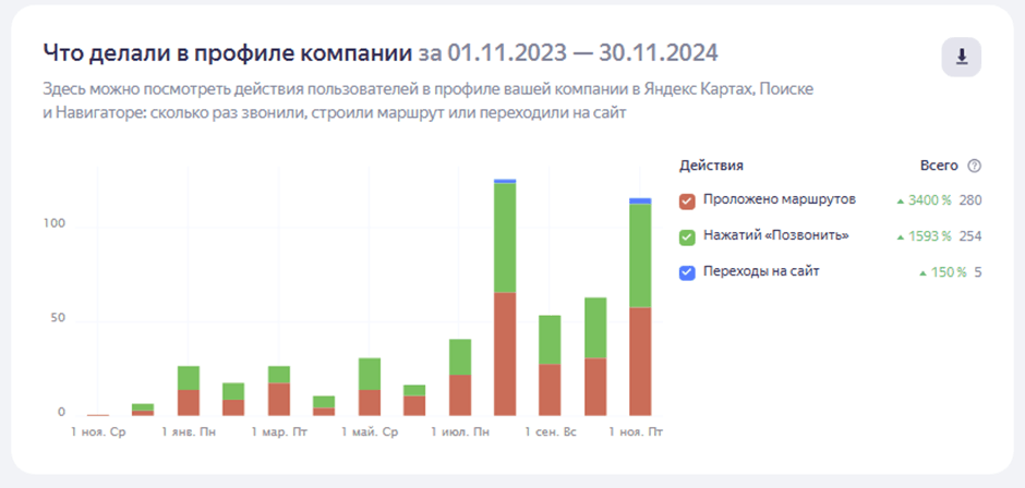 Работа с 2GIS также принесла свои плоды и трафик при учете отсутствия у компании платного продвижения на геосервисе.