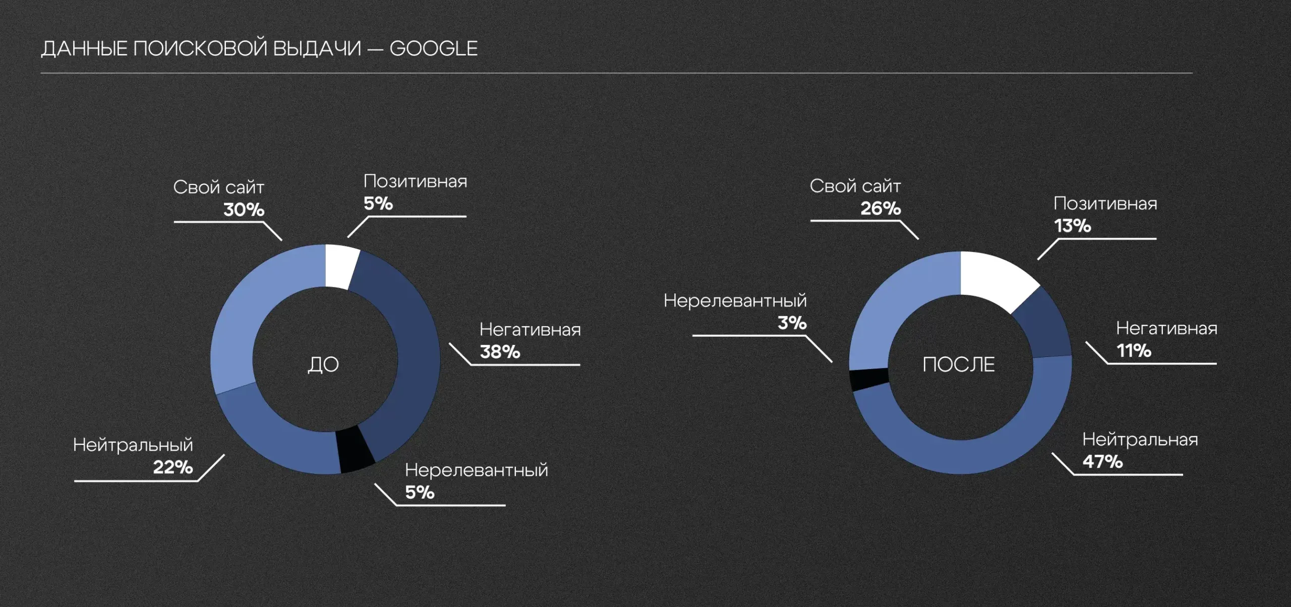 При генерации упоминаний нативно использовали ключевые фразы для продвижения флагманских позиций. При попытке найти продукт по названию модели клиент видел свежие отзывы, обзоры и другой контент, который формировал положительное впечатление. Поисковая выдача из хаотичной стала контролируемой: в ТОП-20 располагались только ресурсы с высоким рейтингом.